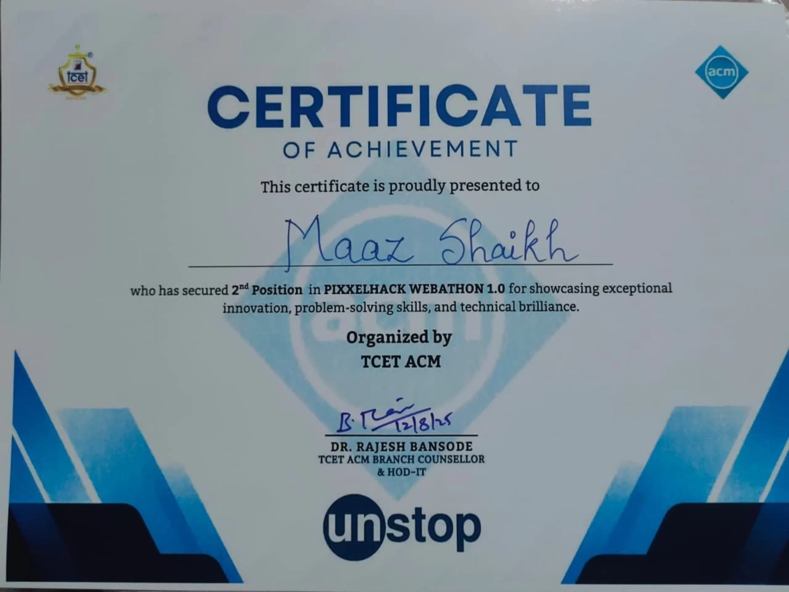 Proud Achievement: Maaz Shaikh Secures 2nd Place at PIXXELHACK WEBATHON 1.0